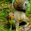 Kolejne spotkanie z wiewiórką szarą na leśnej kładce. Zdjęcie główne wykonane, gdy do kładki się zbliżała nad brzegiem strumyka , następne gdy już była na kładce i spokojnie pozowała do kolejnych ujęć wymachując ogonkiem. Była zawiedziona, ze na poręczy balustrady nie było żadnych pokarmów, jakie zw