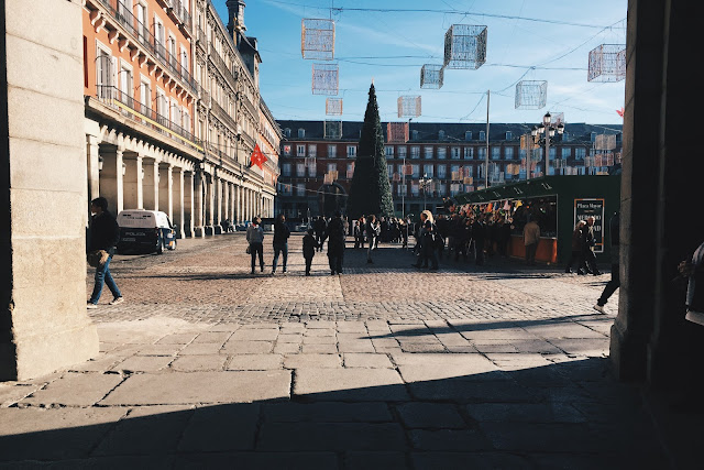1. Let's start with el Rastro, where you can get straight from La Latina metro station. That is where I found my favorite and missed so much Turkish candies, treasures of Spanish cuisine, giant doughnuts and much more.El Rastro is nothing else but a flea market, where you can see treasures from all around the world, and which stretches along Plaza de Cascorro and Ribera de Curtidores. According to the city rules, the market is open Sunday and holidays from 9 am to 3 pm. We were lucky to see a tiny piece of el Rastro, as I think - after all it was almost Christmas.