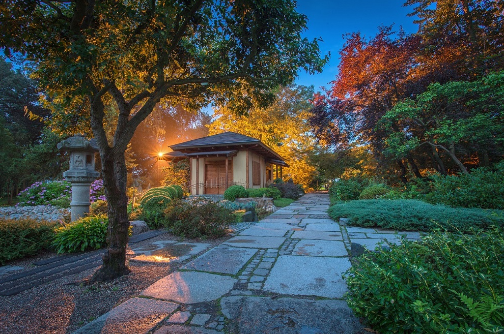 Magia kolorów w Ogrodzie Japońskim Podziwiać można także metasekwoję chińską, klony palmowe, sosnę koreańską. interesujące są także drzewka niwaki, czyli: sosna drobnokwiatowa, cyprisik tępołuskowy, ostrokrzew karbowanolistny. Część z roślin, czyli: dęby, cisy, azalie pontyjskie czy różaneczniki katawbijskie, pochodzi jeszcze z pierwszego okresu działania ogrodu, z początku XX wieku! Odrębnym systemem, ale nie mniej widowiskowym, jest układ strumieni, kaskad i stawów. Ich charakter sprawia, iż są silnie osadzone w dalekowschodniej filozofii i kulturze, a ogród jest pełen symboli. Można tu wyróżnić np. kaskadę męską i żeńską, staw IKE, czyli morze w ogrodzie, kamienne plaże oraz drewniane mosty. Warte obejrzenia są także bramy, herbaciarnia czy kamienne latarnie - część z elementów wystroju pochodzi z oryginalnych azjatyckich ogrodów z XVIII i XIX wieku. Ogród jest czynny do 31 października od godz. 9 do 19. Wstęp jest płatny. Ceny biletów