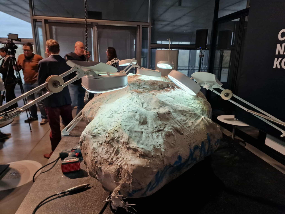 W Centrum Nauki Kopernika w Warszawie można włączyć się w odkrywanie kości dinozaura. Kryją się w bryle zaklejonej gipsem. To pozostałości mastodonzaura z okresu triasu.