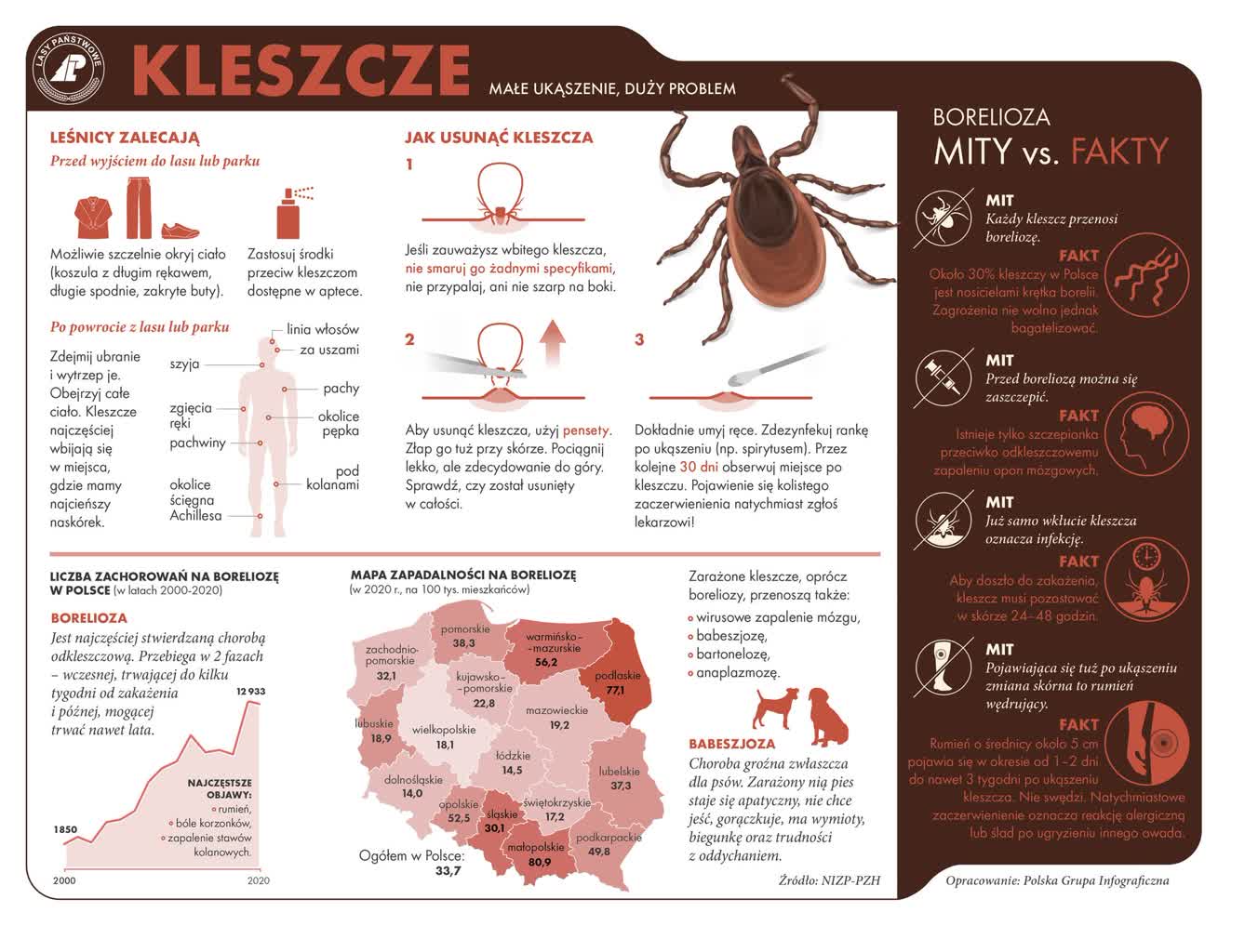 W 2023 r. potwierdzono w Polsce ponad 25 tys. przypadków boreliozy i 659 przypadków kleszczowego zapalenia mózgu – wynika z zestawienia Narodowego Instytutu Zdrowia Publicznego PZH-PIB poświęconego zachorowaniom na choroby zakaźne.