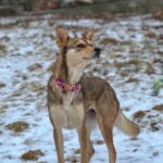 Emma trafiła do nas z Dąbrowy Chełmińskiej razem z dwoma innymi psami. Wszystkie były bardzo wychudzone. Emma przybrała już trochę na wadze, ale wciąż pracujemy nad jej powrotem do idealnej sylwetki. Ma około 2 lat. Jest spokojna i wrażliwa na gwałtowne ruchy oraz nadmiar bodźców. Na początku bywa nieufna, potrzebuje chwili, by poczuć się bezpiecznie i zaufać nowej osobie.