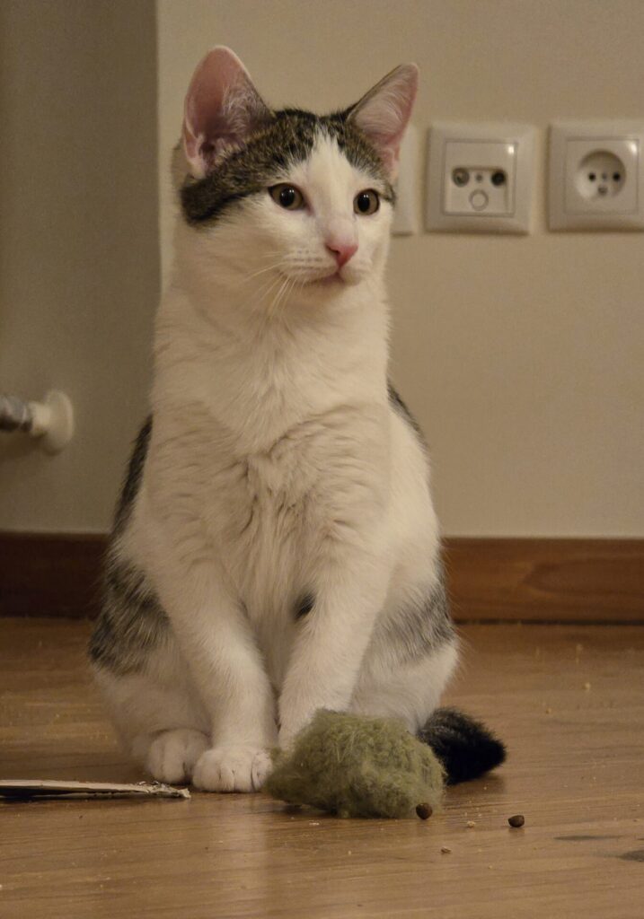 To kocurek, którego znakiem rozpoznawczym jest uroczy, „uśmiechnięty” wyraz pyszczka – patrząc na niego, trudno się nie uśmiechnąć. Ale Fernando to nie tylko wygląd. To ciekawski, radosny maluch, który z entuzjazmem poznaje świat i uwielbia kocie zabawy.