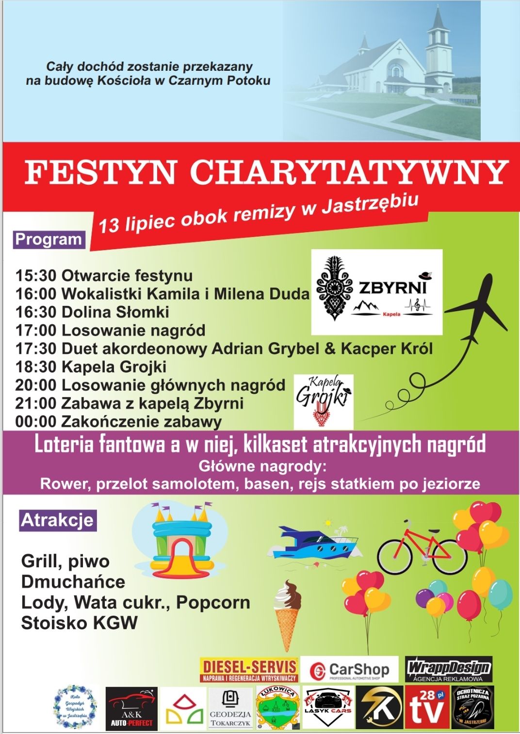 Już w najbliższą niedzielę (13 lipca) w Jastrzębiu odbędzie się festyn charytatywny z którego cały dochód zostanie przekazany na budowę Kościoła w Czarnym Potoku.