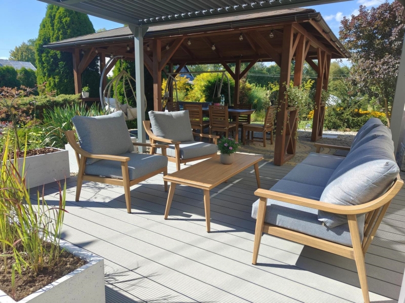 Naturalne materiały będą potrzebowały lepszej osłony przed słońcem i deszczem, więc jeżeli planujemy wybrać drewniane meble ogrodowe, meble rattanowe lub z wikliny, dobrze wówczas zdecydować się na zadaszenia tarasu z drewna lub aluminium.