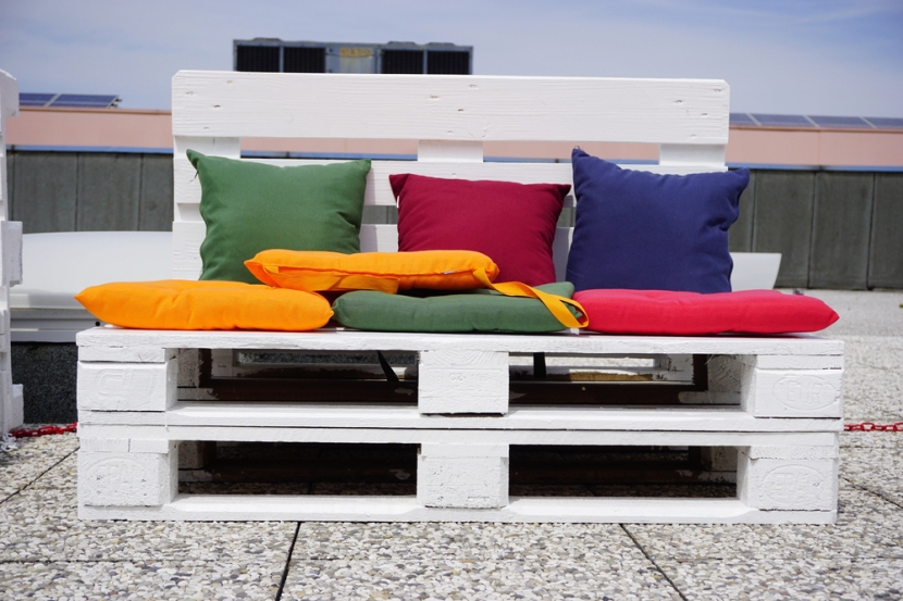 Ostatni etap naszych rozważań jak zrobić meble z palet do ogrodu to wykończenie mebli i ustawienie ich na tarasie. Montujemy przygotowane wcześniej poduszki na siedziska i oparcia, ustawiamy lampki, doniczki i inne dekoracje, by ozdobić naszą sofę lub leżak ogrodowy z palet, a następnie cieszymy się słońcem i piękną pogodą.