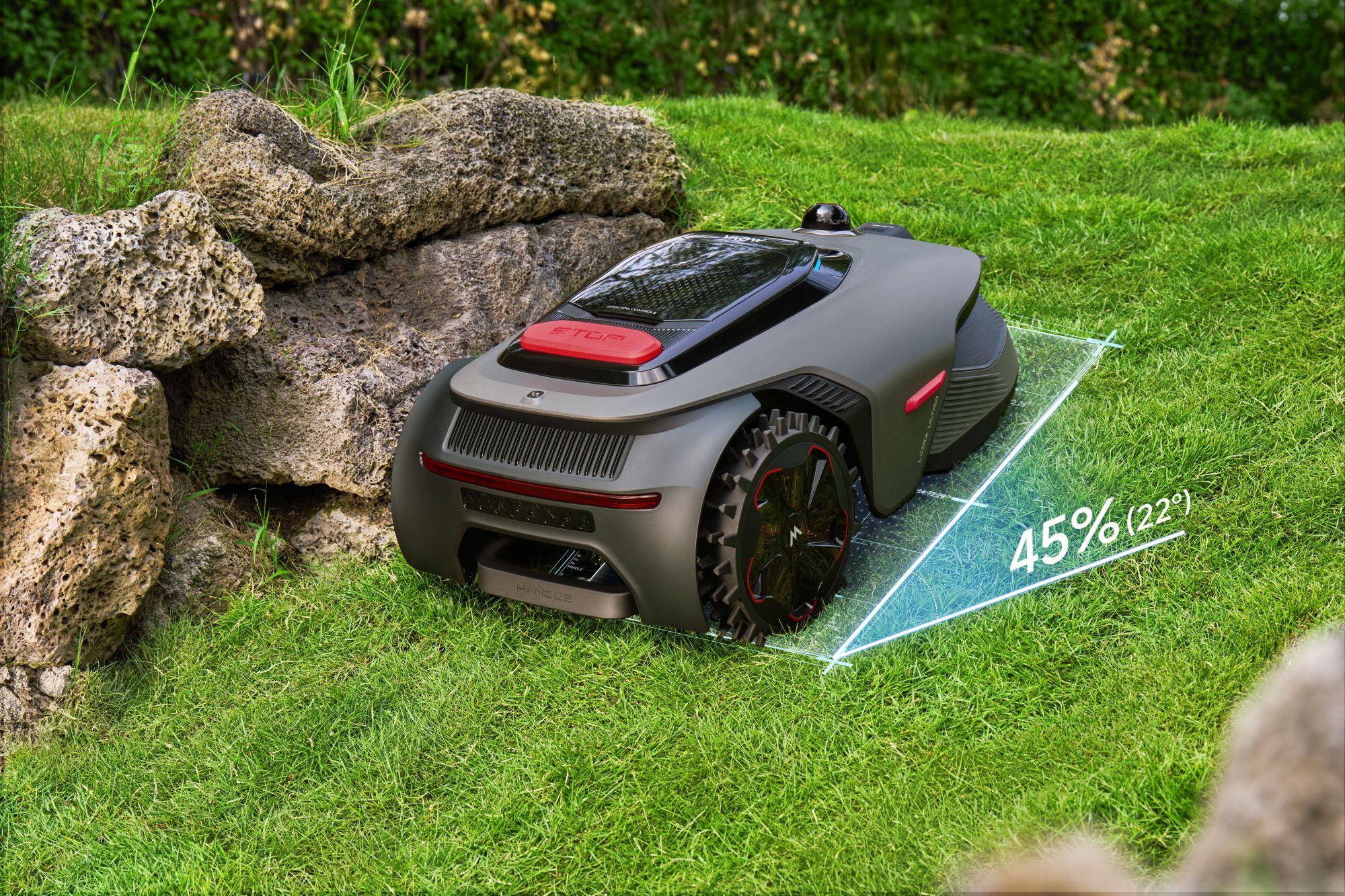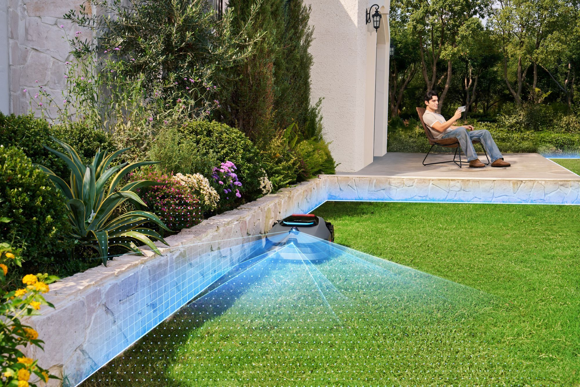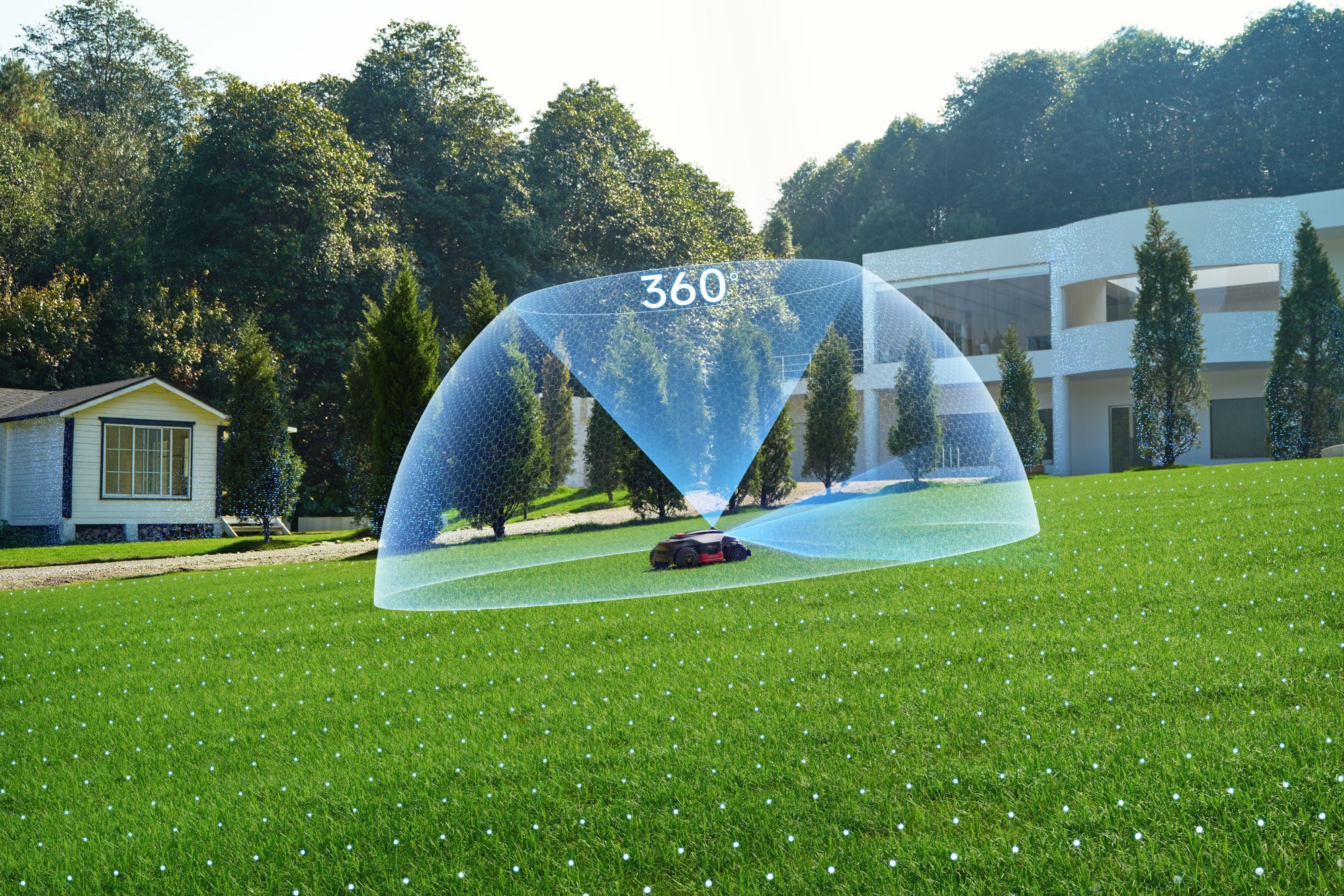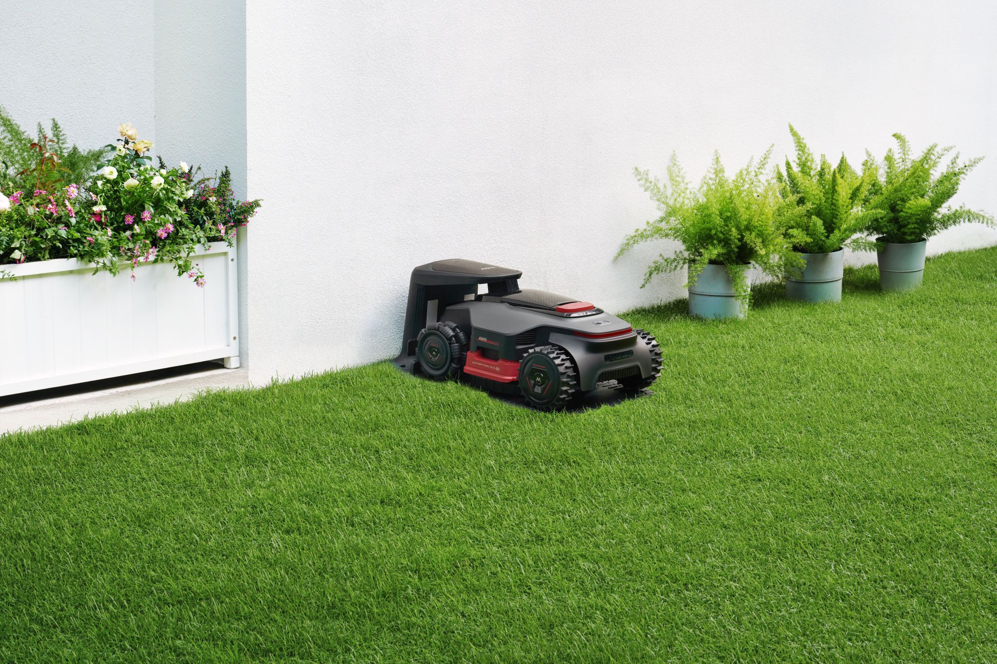 Model LiDAX Ultra AWD 2000 to sprzęt stworzony do obsługi dużych i wymagających terenów o powierzchni do 2000 metrów kwadratowych. Zamiast ślepo odbijać się od przeszkód w granicach wyznaczonych kablem, robot wykorzystuje zaawansowany system LiDAR połączony z technologią widzenia 3D. To pozwala mu na precyzyjne mapowanie ogrodu, samodzielne rozpoznawanie krawędzi trawnika i płynne omijanie obiektów bez użycia GPS.