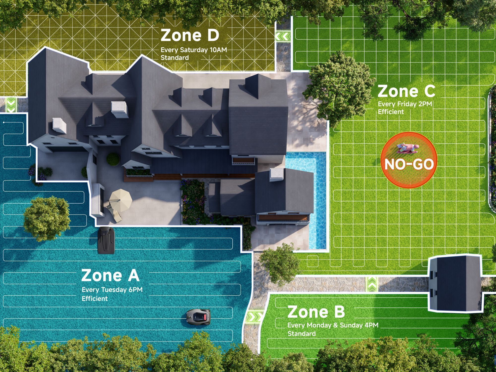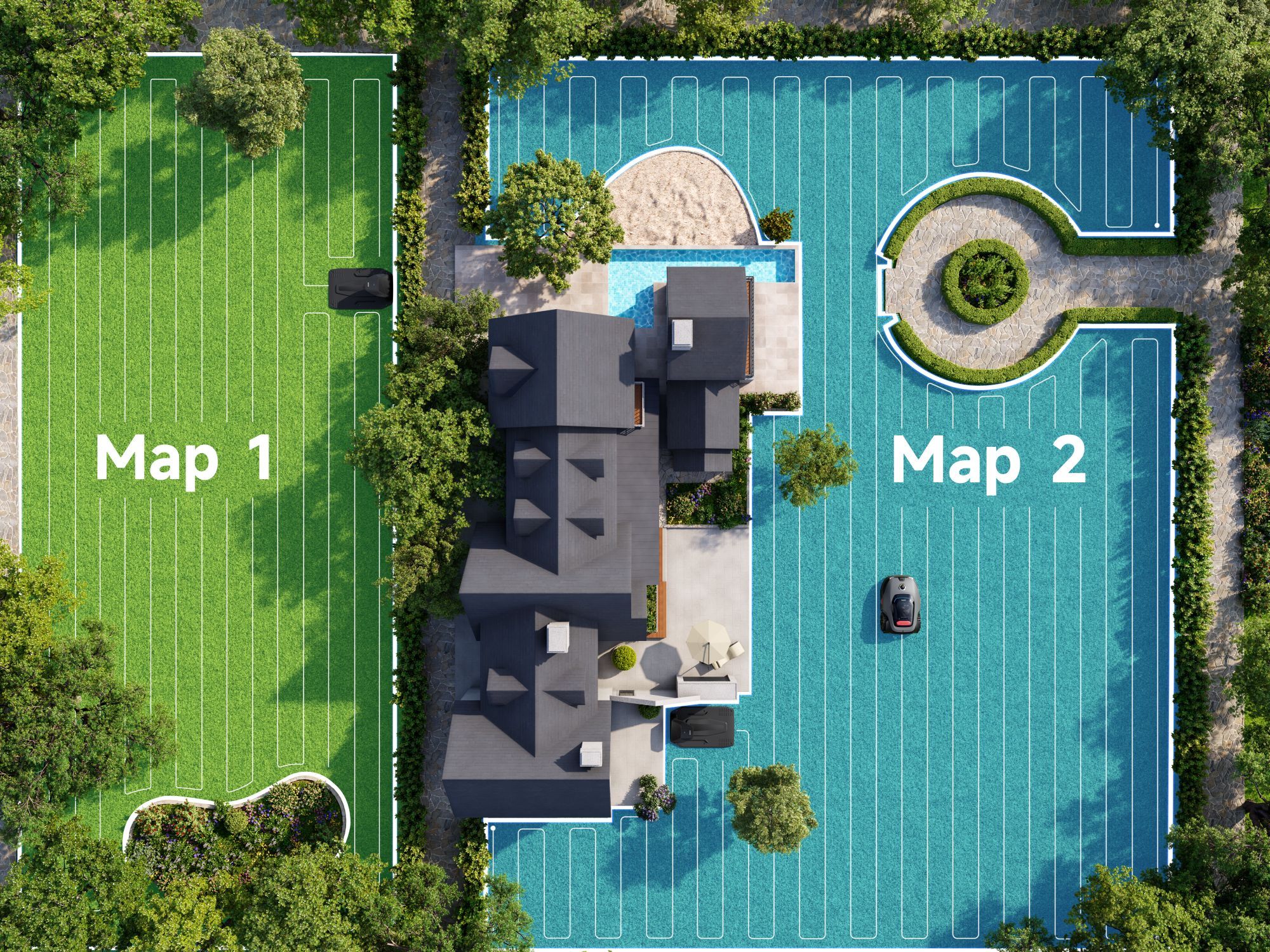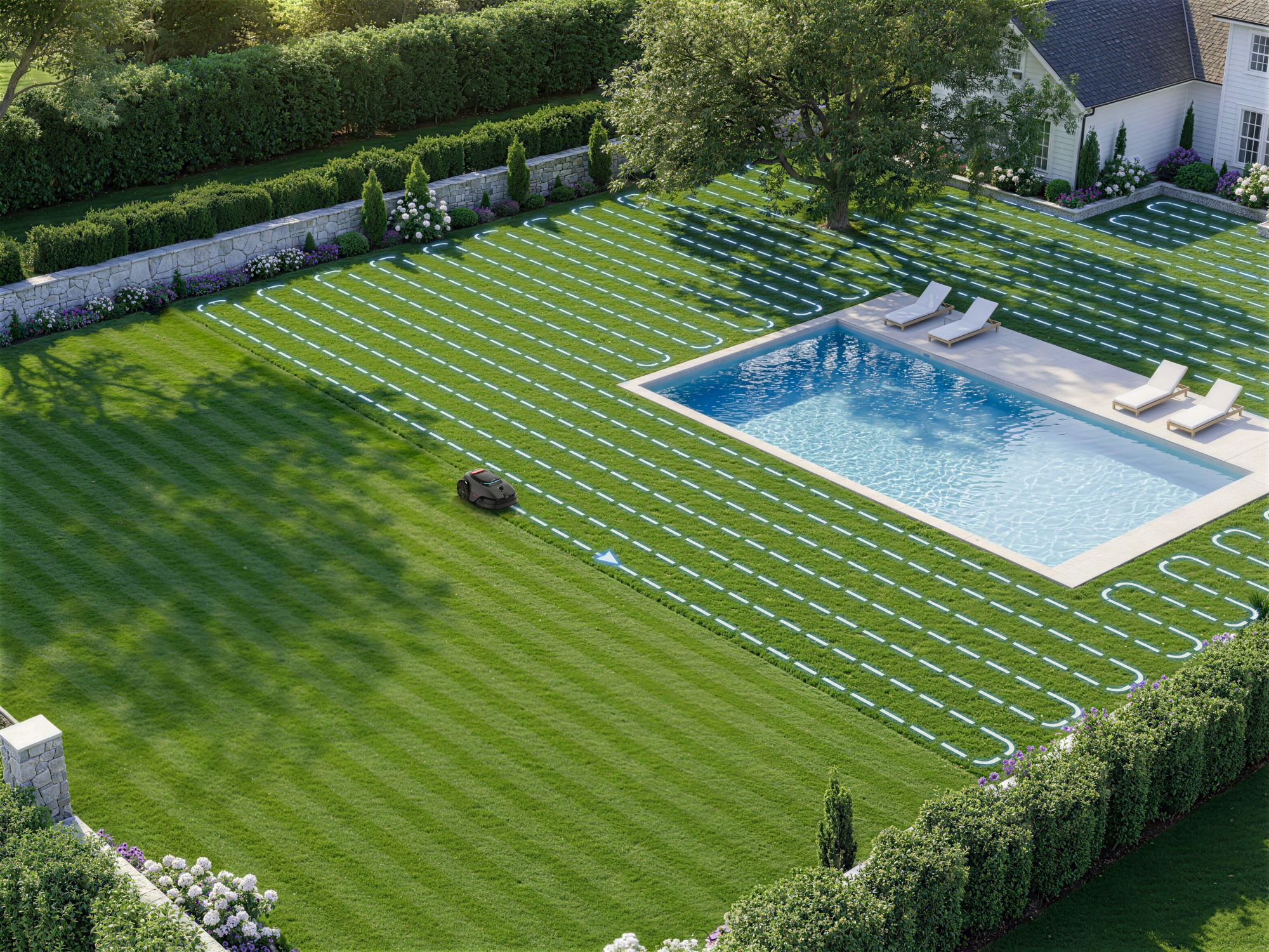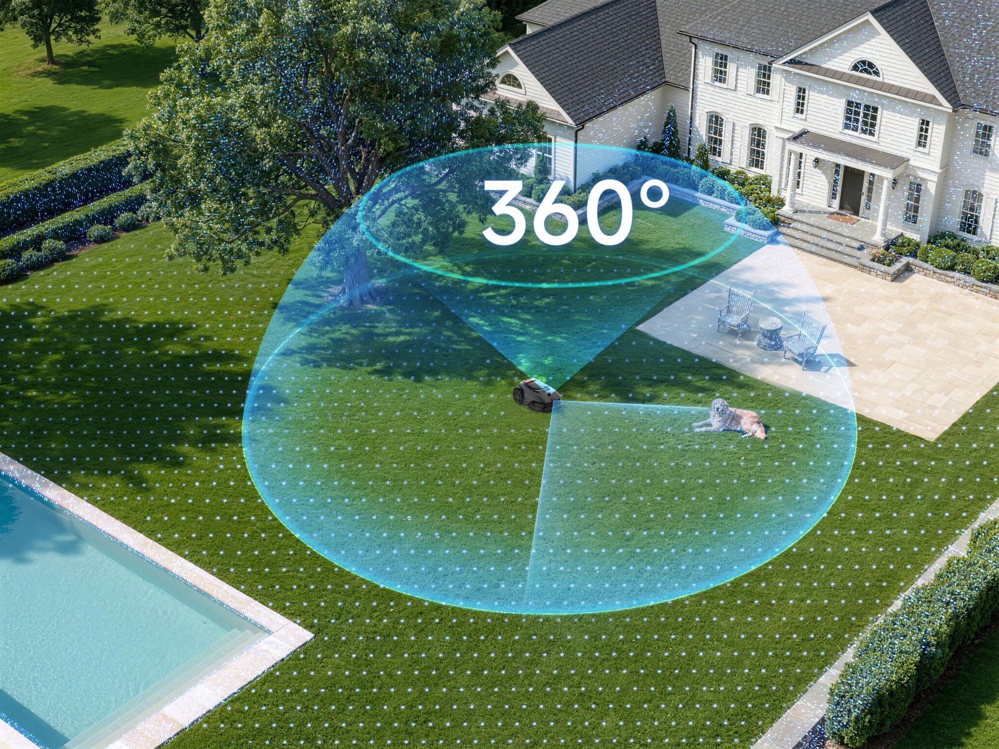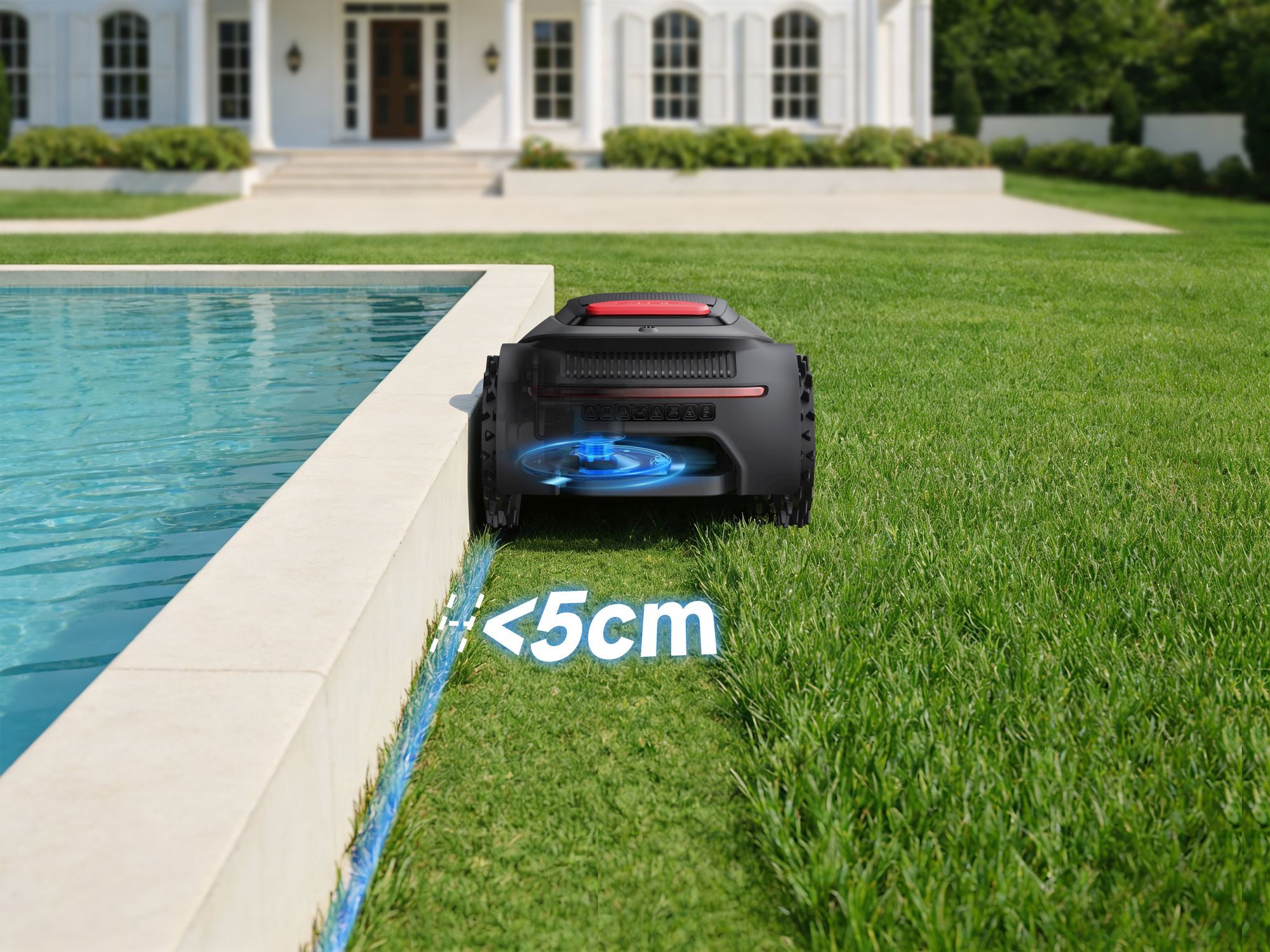 Model LiDAX Ultra AWD 2000 to sprzęt stworzony do obsługi dużych i wymagających terenów o powierzchni do 2000 metrów kwadratowych. Zamiast ślepo odbijać się od przeszkód w granicach wyznaczonych kablem, robot wykorzystuje zaawansowany system LiDAR połączony z technologią widzenia 3D. To pozwala mu na precyzyjne mapowanie ogrodu, samodzielne rozpoznawanie krawędzi trawnika i płynne omijanie obiektów bez użycia GPS.