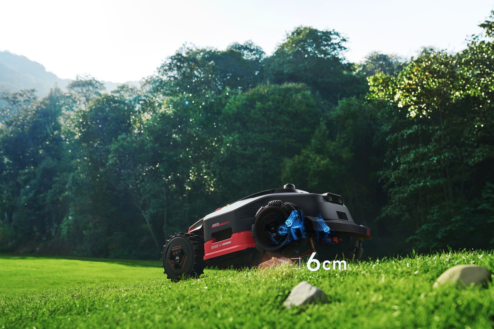 Maszynę napędza 36-woltowy akumulator oraz napęd na cztery koła (AWD). Według specyfikacji producenta, ten mały czołg potrafi pokonywać wzniesienia o nachyleniu do 80%. Za cięcie odpowiadają dwie tarcze oferujące łącznie 40 cm szerokości roboczej, z zakresem regulacji wysokości od 3 do 10 cm.