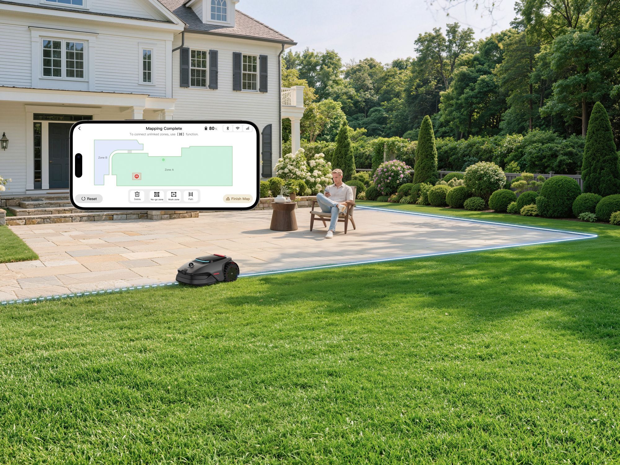 Najciekawszym elementem całej konstrukcji jest jednak rzadko spotykany w tej klasie moduł zamiatający. Robot dosłownie najpierw oczyszcza trawnik z drobnych zanieczyszczeń, a dopiero potem kosi trawę. Całość uzupełnia czujnik deszczu, automatycznie odsyłający maszynę do bazy. Oczywiście na papierze wygląda to jak sprzęt nie do zatrzymania, ale realny test skuteczności i tak rozegra się w prawdziwych ogrodach, starciach z nierównym terenem, błotem i wyjątkowo gęstą trawą.