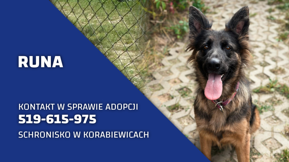 Runa urodziła się w styczniu 2023 roku, waży ok. 25 kg. W schronisku jest raptem od miesiąca. Dobrze żeby nie zagrzała tu miejsca i gwałtownie zapomniała, ze w ogóle kiedykolwiek była w schronisku. Runa to suczka w typie owczarka niemieckiego. Lgnie do człowieka, jest łagodna i bardzo towarzyska.