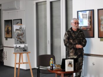 O wilczej naturze, wyglądzie i watahach żyjących w Puszczy Iłżeckiej i okolicznych lasach opowiadał Jacek Major, przyrodnik, ornitolog oraz badacz i tropiciel wilków.
