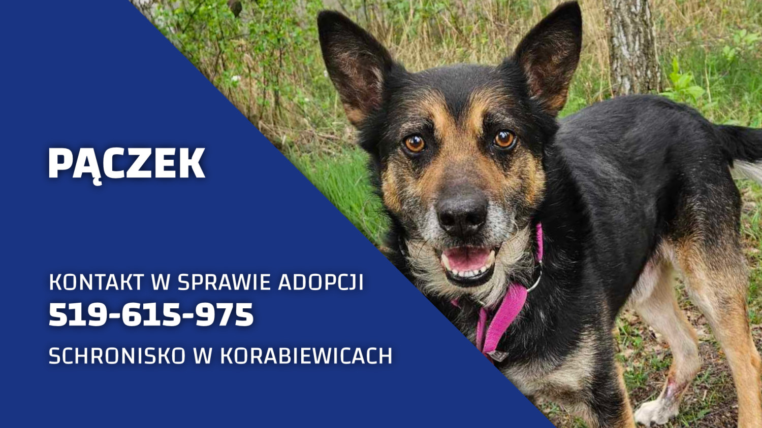 Zajrzyj też na www.schronisko.info.pl i na https://www.facebook.com/groups/fotokorabiewice – znajdziesz tam informacje o Pączku i innych psach z Korabek.
