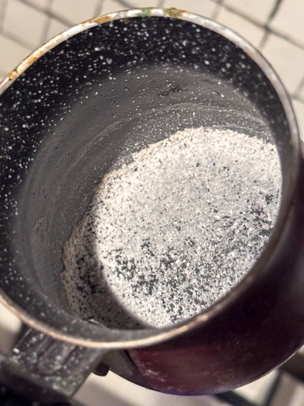 Z około 30 mililitrów odparowanego płynu zostało mi prawie pół grama białego osadu. Zaskoczyło mnie to. Użyłem małego tygielka takiego jak do kawy po turecku – relacjonuje Bartosz Brzeziński. choćby spróbowałem. Był słony – dodaje. W próbce pobranej z ogrodu tygielek był praktycznie czysty.