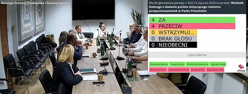 15 stycznia miały miejsce obrady Komisji Ochrony Środowiska i Innowacyjności Rady Miasta Pruszkowa. Na początku obrad Radny Bartosz Brzeziński zgłosił wniosek o rozszerzenie porządku obrad, o problemy dotyczące remontu prowadzonego na terenie Parku Potulickich. Niestety czworo radnych doprowadziło do zablokowania dyskusji o trwającym problemie w normalnym toku obrad Komisji, „przeciw” zagłosowali: z Pruszkowa Obywatelskiego Maria Biernacka (zarazem przewodnicząca komisji), Michał Lewandowski i Jacek Rybczyński, zaś z Pruszkowskiej Wspólnoty Samorządowej – Ewa Nowacka.