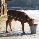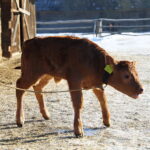 20.01.2026. Tokarnia. Skansen Muzeum Wsi Kieleckiej. / Fot. Wiktor Taszłow – Radio KielceNa razie cielaczek mieszka ze swoją mamą w oborze, ale wiosną stanie się jedną z czworonożnych gwiazd, zamieszkujących wiejskie zoo w skansenie. Zresztą, jak zdradza kierownik, pojawią się w nim także inni nowi lokatorzy.