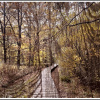Spojrzenie na jesienny las przez drewnianą ścianę.....