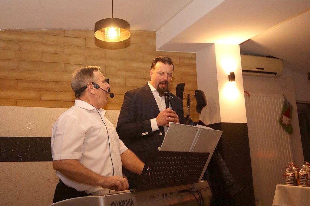 I miało. Podniosła atmosfera i charakter imprezy oznaczały, iż nie mogło zabraknąć dzielenia się opłatkiem, składania sobie życzeń czy wspólnego śpiewania kolęd, w towarzystwie akompaniamentu muzycznego, który zapewnił Sławomir Pypłacz, skarbnik Zarządu ROD „Zgoda” z Bańgowa.