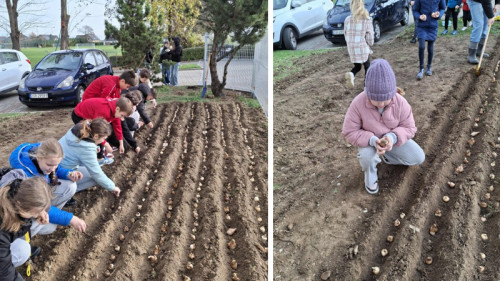 W dniach 13 i 14 listopada przy budynku B, na terenie zielonym obok parkingu przy Szkole Podstawowej im. Marii Konopnickiej w Kostomłotach, odbyła się akcja sadzenia żonkili. Dzięki wspólnemu wysiłkowi uczniów powstało wyjątkowe pole, które wiosną rozkwitnie żółtymi kwiatami – symbolem solidarności i wsparcia dla osób objętych opieką hospicyjną.
