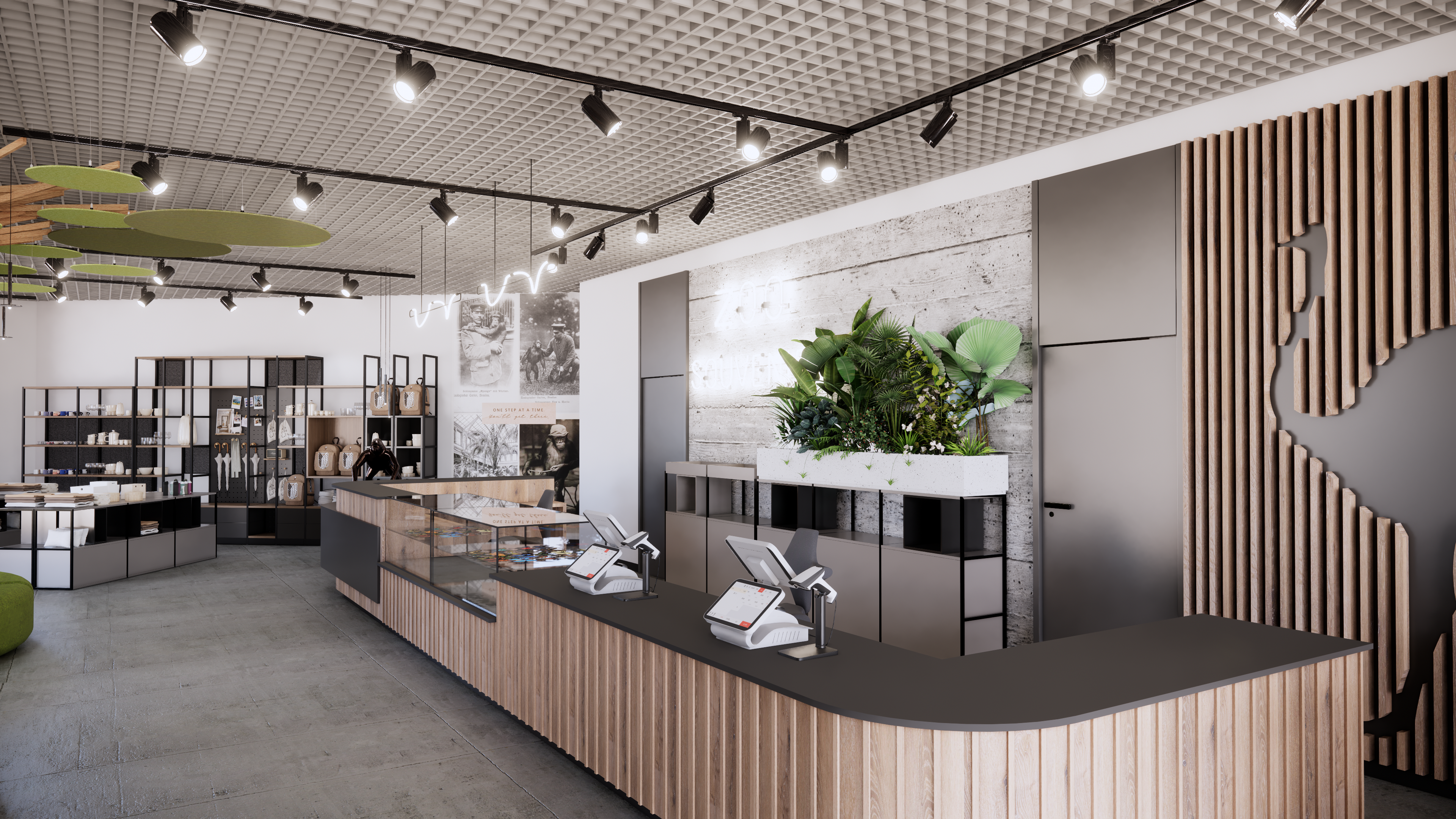 W budynku zlokalizowana zostanie przestrzeń wystawiennicza i edukacyjna z punktem handlowym, ale także zaplecza sanitarne i przechowalnia bagażu dla odwiedzających ogród. Wyjście z zoo docelowo odbywać się będzie poprzez budynek, gdzie będzie można kupić pamiątki dystrybuowane oficjalnie przez zoo.