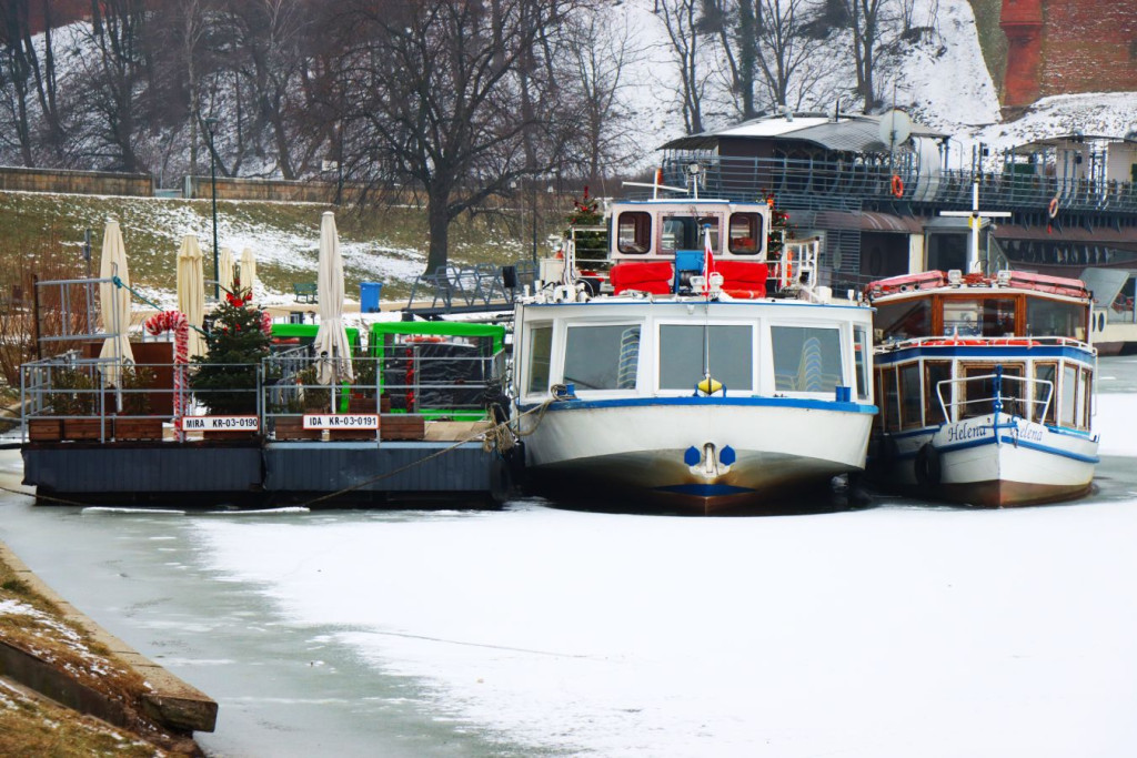 Fragmenty Wisły w rejonie krakowskich bulwarów są miejscami całkowicie zamarznięte. Przy nabrzeżach stoją barki i statki wycieczkowe, które przez lód są unieruchomione. Trzeba przyznać, iż taki widok w Krakowie to rzadkość. Zobaczcie naszą fotorelację.