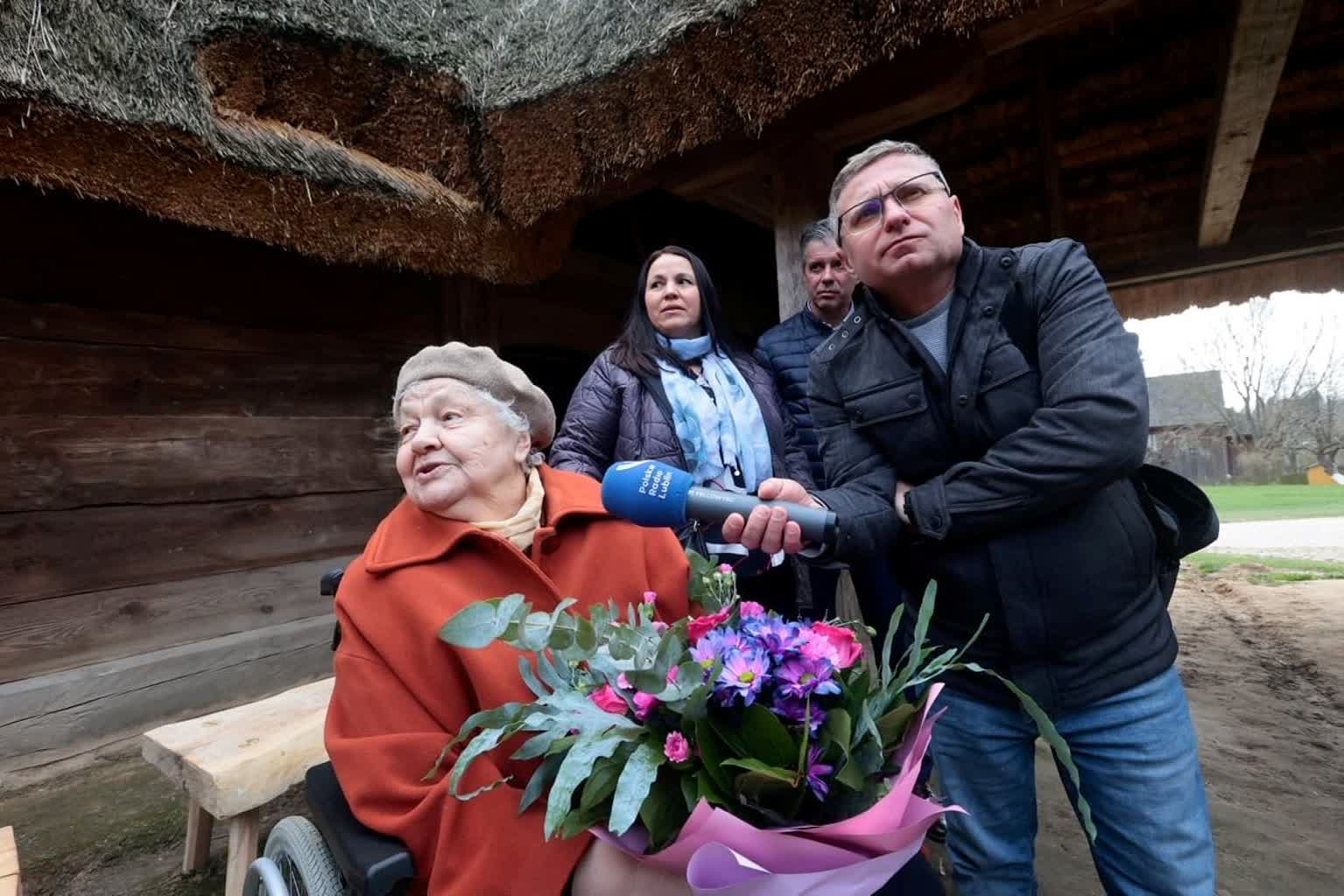 – Budynki i część wyposażenia należały do moich rodziców – mówi Eleonora Niedbalska z domu Borówka. – Tu się wychowałam, w tej stodole. Urodziłam się w 1939 roku. Obory służyły do trzymania zwierząt, a w stodołach składowało się siano i zboże. Ten żelazny wóz, który tu stoi, sieczkarnia, kierat – kiedyś to wszystko było. Kierat koń pociągał i ruszał, sieczkę się rżnęło dla krów, dla konia. Pługi, sprężynówka, brony wiszą na ścianie. Ja jeszcze młóciłam cepem. Bardzo się cieszę, iż jest niezniszczony, bo moi zięciowie by się tym nie zajęli – zawaliłoby się to.